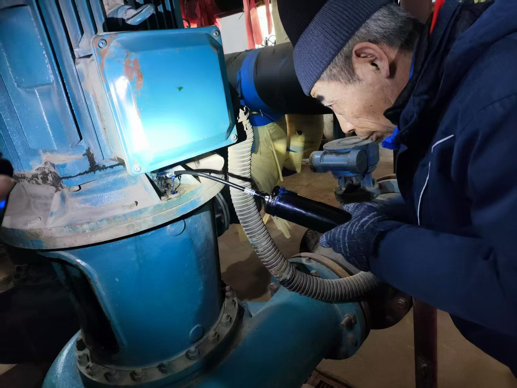 2024年12月23日晚上8點(diǎn)多,萬(wàn)惠站內(nèi)失水掉壓,蘇昭和同事們立即沿線進(jìn)行排查,找到2處跑水點(diǎn)。在緊張的搶修過(guò)程中,蘇昭白天配合挖機(jī)作業(yè)、抽排污水,晚上協(xié)助檢修所員工下地溝為DN300的管網(wǎng)打上2個(gè)大抱卡。經(jīng)過(guò)一天一夜的連續(xù)奮戰(zhàn),終于在24號(hào)凌晨2:00完成了搶修和回填,92個(gè)商鋪恢復(fù)了供熱。由于天氣寒冷,蘇昭和同事們身上結(jié)出了冰碴,手也凍僵了?!懊ζ饋?lái)就顧不了那么多了,問(wèn)題解決了才能松一口氣?!彼f(shuō)。